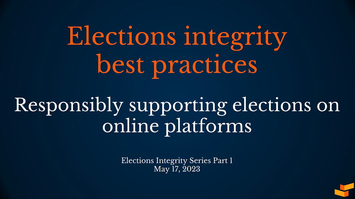 I’m so excited to share today a huge milestone for this elections work - the part one launch of a guide with the Integrity Institute titled: “Elections integrity best practices: Responsibly supporting elections on online platforms,” that I authored along with Integrity Institute member Glenn Ellingson and many other Institute members.